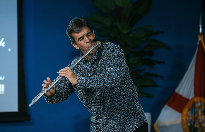 • Huáscar Barradas, flautista venezolano, productor musical, ganador del Latin Grammy y activista de Cantamos por la Paz Foundation, ofreció dos especiales interpretaciones musicales que prepararon al público para el poderosamente transformador contenido del documental “Alas Rotas”, dando también un emotivo cierre, con la interpretación de “Qué bonita es esta vida”, celebrando la atmósfera que dio despertar y compromiso a todos los presentes como: Agentes de cambio.