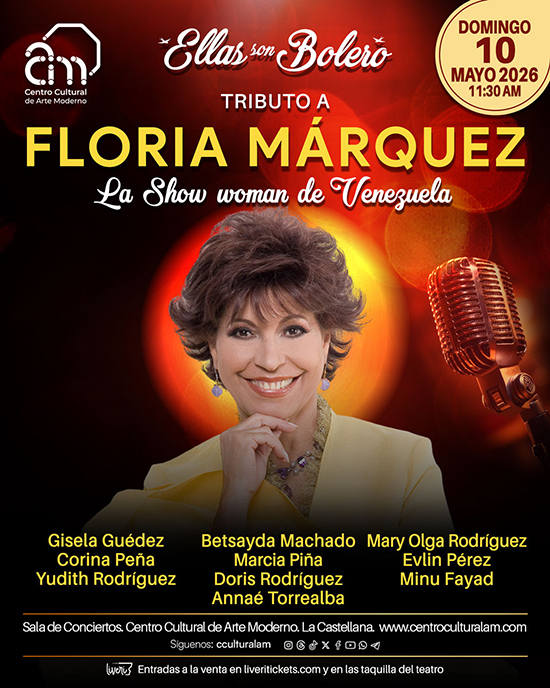 El Centro Cultural de Arte Moderno presenta una emotiva edición del exitoso espectáculo «Ellas son bolero», con la participación de diez de las voces femeninas más poderosas de la escena nacional, quienes se unirán en esta gala inolvidable para homenajear el legado de la «Show Woman de Venezuela»