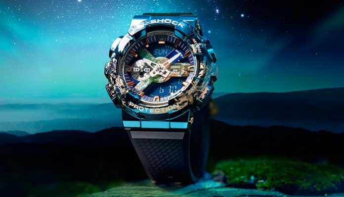 En el caso del modelo GM-110EARTH-1A, se usó un revestimiento de iones para crear un diseño único y elegante que imita la topografía de la Tierra. El reloj presenta un bisel de acero inoxidable con un patrón grabado con láser que se asemeja a la superficie de nuestro planeta, con un esquema de color de tonos verdes, azules y pardos que enfatiza aún más el diseño inspirado en la Tierra. Este reloj cuenta con las características que han acompañado a G-SHOCK por más de 40 años; resistencia absoluta, tecnología y diseños inspirados en las últimas tendencias de la moda.