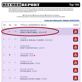 Su actual sencillo promocional, “Novios de a ratico”, es la primera colaboración internacional de JotaG (@jotagmusica_), la cual es con la dominicana Patty Moll (@patty.moll). El tema ha tenido tal receptividad que se encuentra en el #1 de la cartelera general del Record Report. “Siempre es una gran satisfacción saber que un proyecto al que le pusimos cariño le está yendo bien. Simplemente representa el esfuerzo y las ganas de seguir haciendo las cosas bien”, comenta el cantautor.