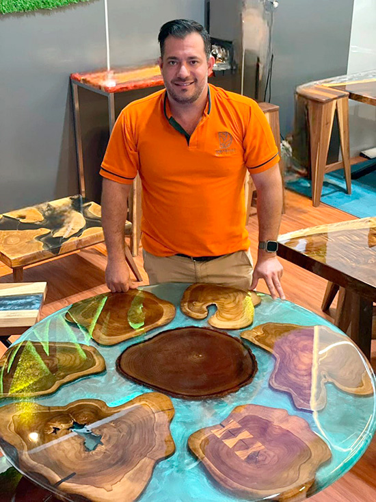 Más allá de un diseño, utilizar la resina ecológica, amigable con el ambiente, sobre lo natural que en este caso es la madera y crear una perspectiva diferente de lo que se puede lograr con ella es el objetivo del talentoso artista venezolano.