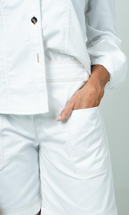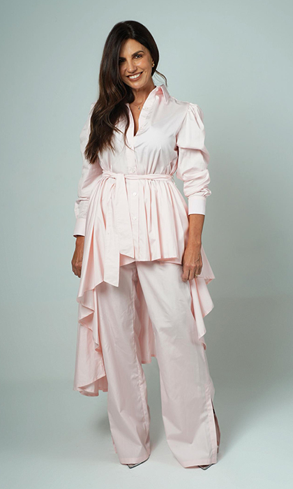 Inspirada en la versatilidad de la mujer de hoy, “INFINITO” combina atuendos atemporales con detalles innovadores, diseñados para transformar y jugar con diferentes estilos en. Entre las prendas protagonistas se encuentran blazers largos y cortos que delinean figuras con elegancia, conjuntos versátiles, chalecos que añaden un toque sofisticado, camisones delicados que transmiten lujo, pantalones que combinan comodidad y estilo, y tops entrelazados al cuello con lazo removible, una invitación a personalizar cada look; prendas de mangas bombache, amplios vuelos y movimiento que parecen envolver la figura como una segunda piel.