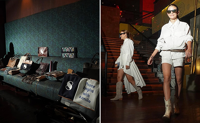 Los flecos, un símbolo que define la esencia de Ana Ascanio, se combinan con texturas de napas italianas y la icónica vachetta de la firma de Liliana Ávila. Cada pieza ha sido diseñada con atención al detalle, reflejando un profundo amor por la artesanía. “Hacer marroquinería a mano, sin la guía directa o in situ de mi maestro talabartero, fue un reto emocionante. Trabajé con jóvenes aprendices de mi talabartero, los cuales están siendo instruidos de manera online por él mismo, lo que le ha dado un significado especial a este proceso”, comentó Liliana.