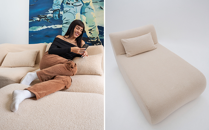 Actualmente, los sofás están disponibles en beige y gris, con planes de ampliación de colores. Cada módulo cuenta con una funda resistente a líquidos y antimanchas, además de ser lavable, lo que garantiza su mantenimiento y durabilidad. Además, por su diseño modular, los consumidores pueden elegir la cantidad de piezas necesarias y configurarlas de acuerdo con sus espacios.