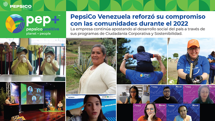 PepsiCo Venezuela a través de sus programas de impacto social, durante el 2022 mantuvo su compromiso por generar un cambio positivo para el planeta y las personas, logrando alcanzar grandes resultados a través de la ejecución de sus iniciativas con el apoyo de aliados y sus colaboradores, exaltando la responsabilidad social y empresarial que tienen en cada lugar en donde opera.