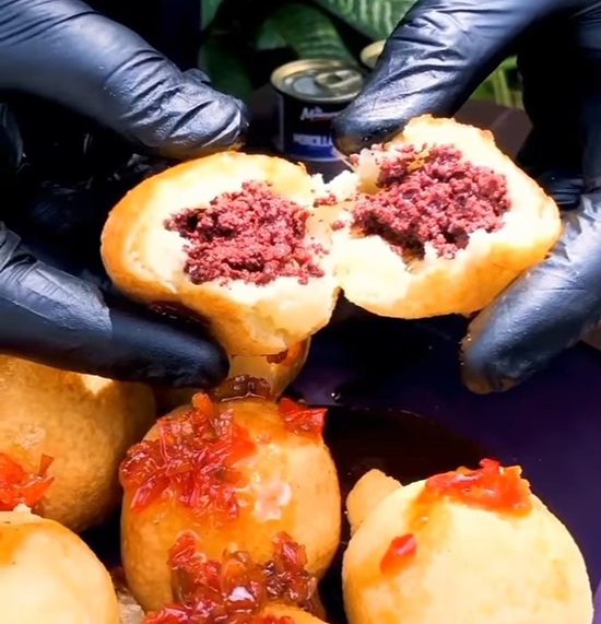 Mezclar el puré de yuca con la Morcilla Carupanera La Montserratina y luego darle forma redondeada a esta mezcla, como buñuelos.